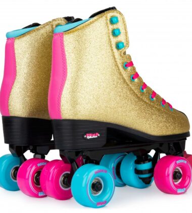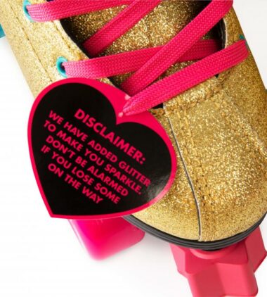 The boot upper is made from glitter material, features a heart cut-out tongue and star-adjustable toe-stop – imagine you’re at a rollerdisco outside or take these along to an evening of dancing around a glitterball – these skates will bring the party.